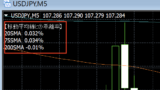 理論としては、3本の移動平均線が並んで、ヒストグラム転換の時。基本は順張り。1分足で見て下げトレンドだったらショート。順張りなので、下げ局面で反転してもロングはしない。